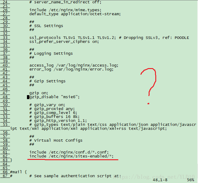 不過別著急,listen 80 肯定是有的,只不過沒在這里面放了。你看,不是有 include 文件嗎?在那里面也說不定。
