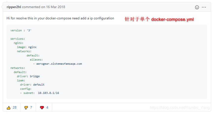 在使用 docker-compose 部署應用時, docker 默認的網絡模式是 bridge ,默認網段是 172.17.0.1/16。十分不巧的是我們自己物理機的局域網也使用的是 172.18.0.1/16 的網段。