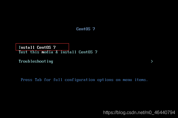 6. 進(jìn)入頁面后,鼠標(biāo)放到頁面內(nèi)點(diǎn)擊隱藏鼠標(biāo),可通過 ctrl+alt 鍵顯示鼠標(biāo)。通過鍵盤上下鍵進(jìn)行選擇install centos7,按enter鍵進(jìn)入: