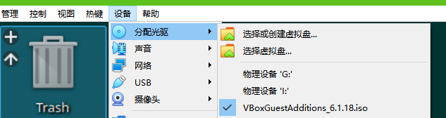 選擇設(shè)備——》選擇虛擬盤(pán)——》選擇文件VBoxGuestAddtions.iso