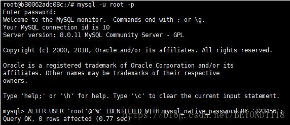 ALTER USER 'root'@'%' IDENTIFIED WITH mysql_native_password BY '123456'; //123456是mysql的登錄密碼