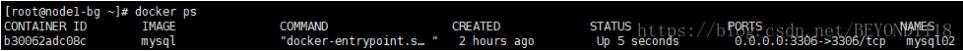 1、首先docker ps命令查看正在運行的容器,確保我們想要連接的mysql已經啟動,如果沒啟動使用docker start命令啟動(下圖查看結果表示已經啟動了一個mysql)
