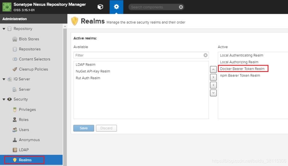 將Docker Bearer Token Realm配置到右邊,點(diǎn)擊save即可