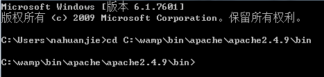 打開CMD,進(jìn)入到Apache安裝目錄下的bin目錄下: