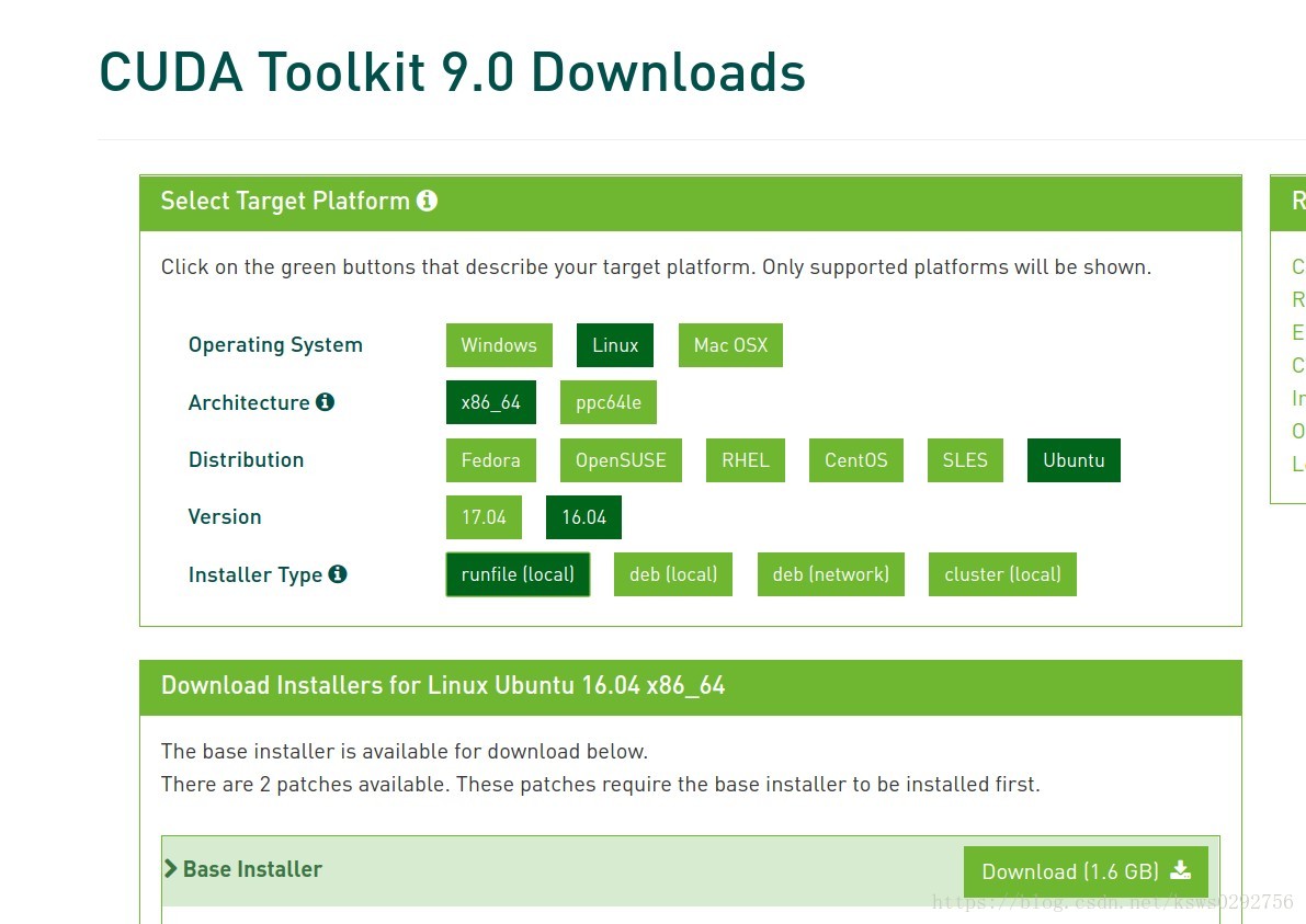 然后,選擇對應的安裝包,這里選擇runfile類型的安裝文件,以便后面設置每個cuda的安裝路徑。