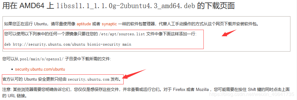 需要安裝包 libssl1.1, 直接使用命令會安裝失敗,需要更添加源,這個包的更新數據ubuntu官方認可的源才能更新。