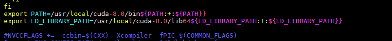 將相應的cuda-9.0換成cuda-8.0,如下圖所示(保存之后退出)