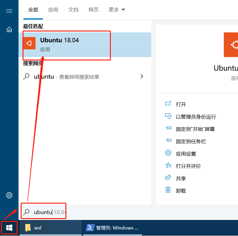 按下 Windows 鍵 輸入 Ubuntu 單機打開,設置用戶名和密碼