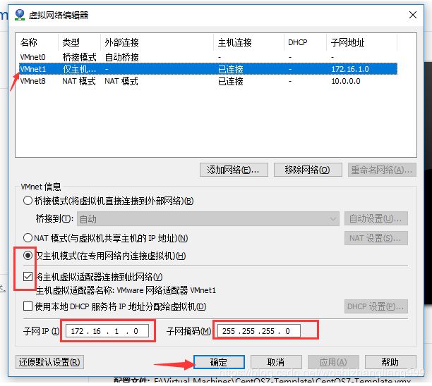 針對虛擬機網絡連接中:僅主機模式和NAT模式,進行設置。這樣可以規范所有虛擬機中網絡連接所使用的網段。