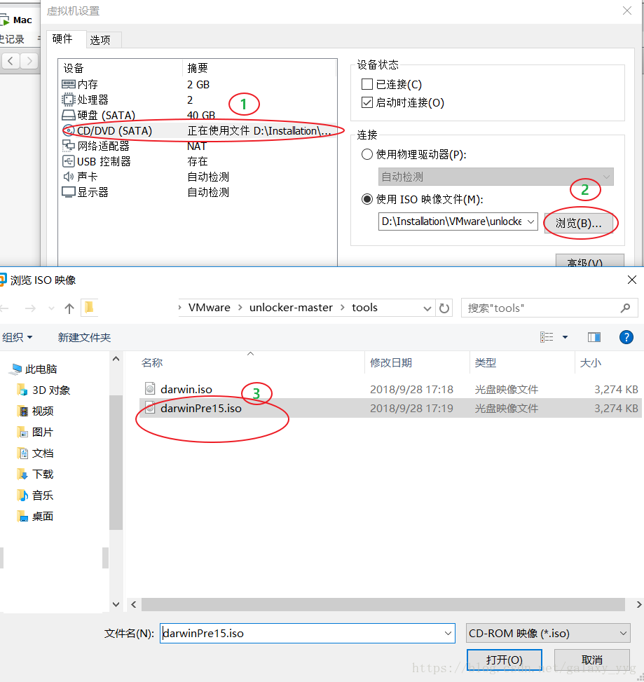 安裝完成后,鼠標和窗口大小都不舒服。這時候就要安裝VMware Tool。還記得MacOS Unlocker for VMware 安裝后出現的兩個文件夾么,其中一個tools的文件夾中有我們要的工具。