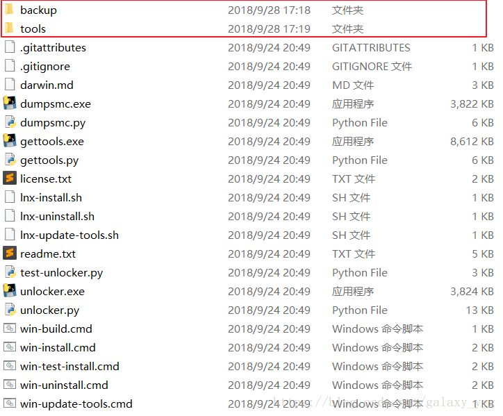 運行成功后,文件夾里文件發生了變化:多了backup和tools兩個文件夾。效果如下: