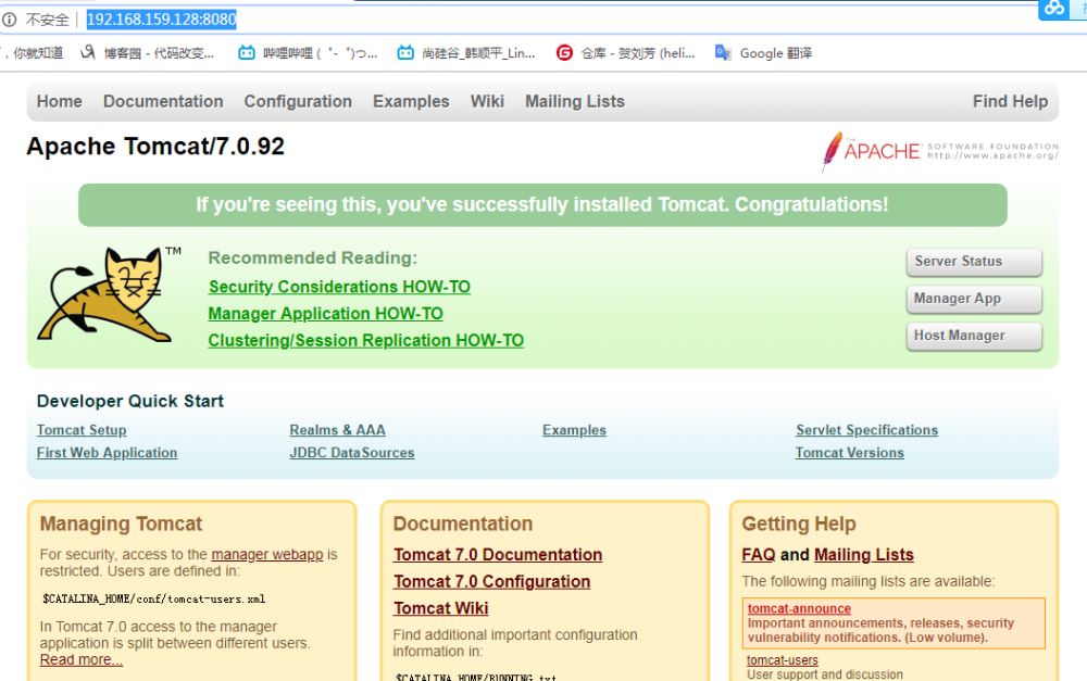 瀏覽器訪問:http://192.168.159.128:8080/出現下面這個界面就是安裝成功。