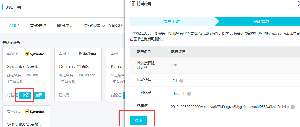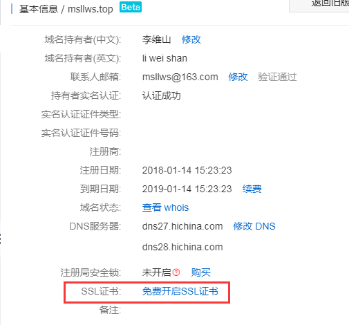 首先申請SSL證書,以阿里云為例,找到域名管理: