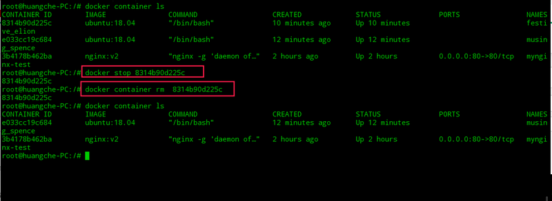 可以使用 docker container stop或者docker stop 容器id 來終止一個運行中的容器。此外,當 Docker 容器中指定的應用終結時,容器也自動終止。