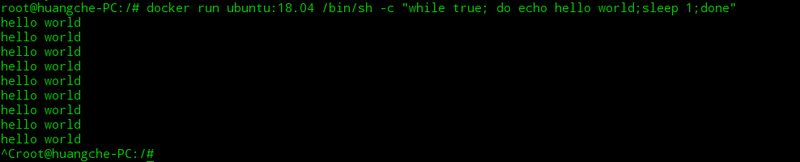 docker run ubuntu:18.04 /bin/sh -c "while true; do echo hello world;sleep 1;done"