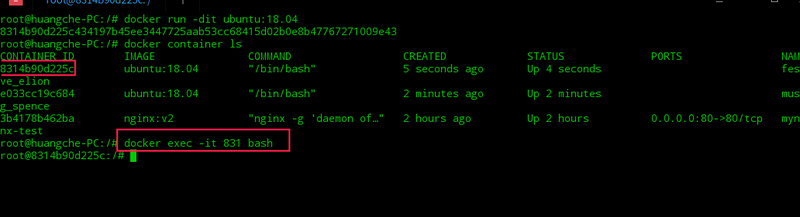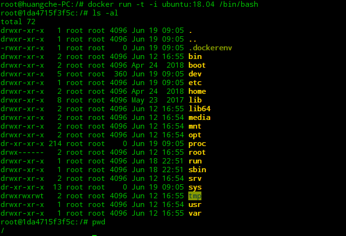 docker run -t -i ubuntu:18.04 /bin/bash