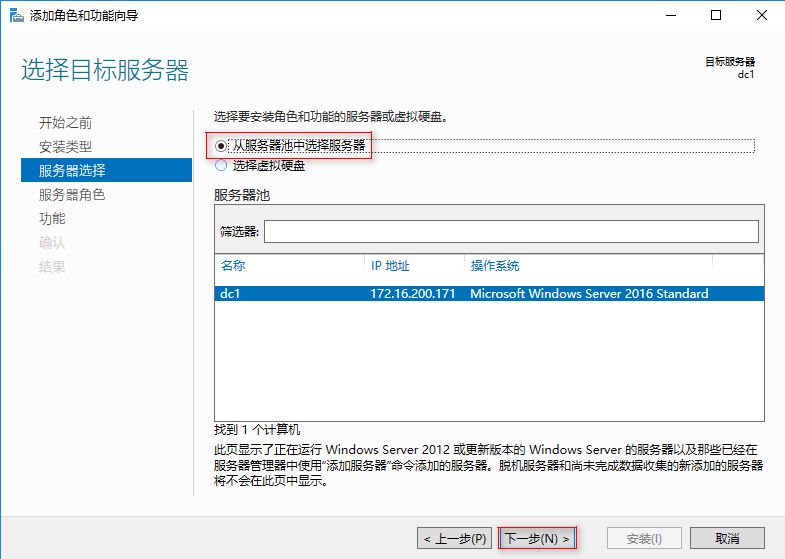 4)選 從服務(wù)器池中選擇服務(wù)器,點(diǎn) 下一步;