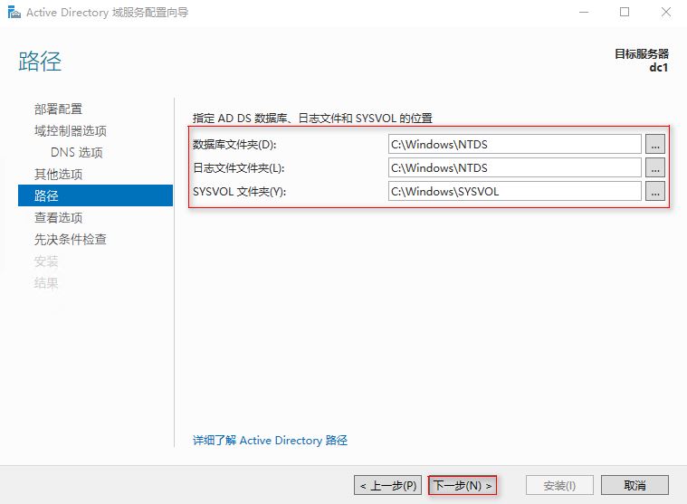 AD DS數(shù)據(jù)庫(kù)、日志文件夾和sysvol文件夾,出于安全考慮建議放在其他盤