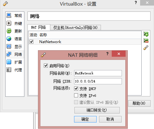 1. 打開Vbox, 選擇“管理”菜單->”全局設(shè)定” ->網(wǎng)絡(luò),設(shè)置兩張網(wǎng)卡參數(shù);