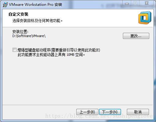 3.選擇”安裝位置”。”增強(qiáng)型鍵盤(pán)驅(qū)動(dòng)程序”選項(xiàng)說(shuō)明:增強(qiáng)型虛擬鍵盤(pán)功能可更好地處理國(guó)際鍵盤(pán)和帶有額外按鍵的鍵盤(pán),此功能只能在 Windows 主機(jī)系統(tǒng)中使用。由于增強(qiáng)型虛擬鍵盤(pán)功能可盡可能快地處理原始鍵盤(pán)輸入,所以能夠繞過(guò) Windows 按鍵處理和任何尚未出現(xiàn)在較低層的惡意軟件,從而提高安全性。使用增強(qiáng)型虛擬鍵盤(pán)功能時(shí),如果按下 Ctrl+Alt+Delete,只有客戶(hù)機(jī)操作系統(tǒng)會(huì)做出反應(yīng)。點(diǎn)擊”下一步”