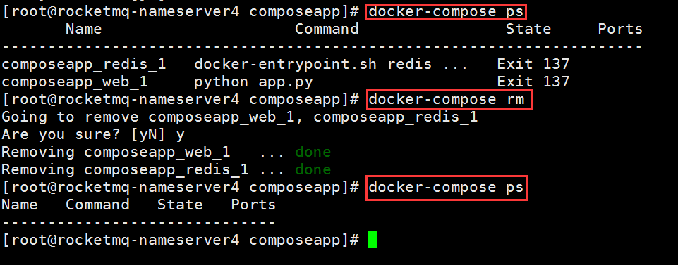 docker-compose rm nginx 刪除容器(刪除前必須關閉容器)