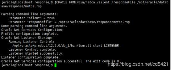 $ORACLE_HOME/bin/netca /silent /responseFile /opt/oracle/database/response/netca.rsp