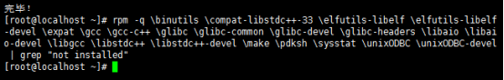 rpm -q \binutils \compat-libstdc++-33 \elfutils-libelf \elfutils-libelf-devel \expat \gcc \gcc-c++ \glibc \glibc-common \glibc-devel \glibc-headers \libaio \libaio-devel \libgcc \libstdc++ \libstdc++-devel \make \pdksh \sysstat \unixODBC \unixODBC-devel | grep "not installed"