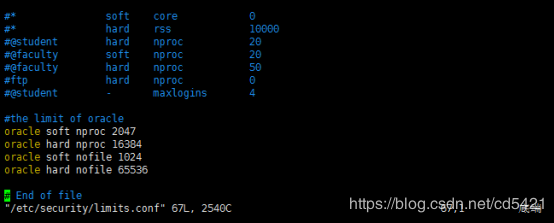 oracle soft nproc 2047