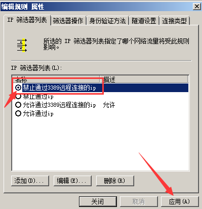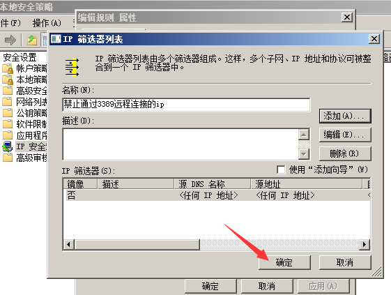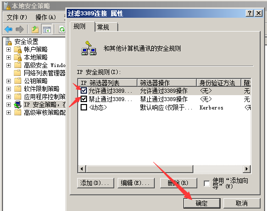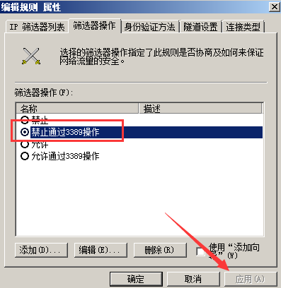 然后在添加一個禁止通過3389遠程連接的ip規(guī)則。
