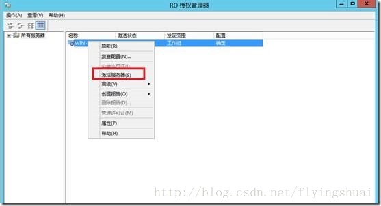 2) 再選擇服務(wù)器,點(diǎn)擊右鍵,選擇”激活許可”;