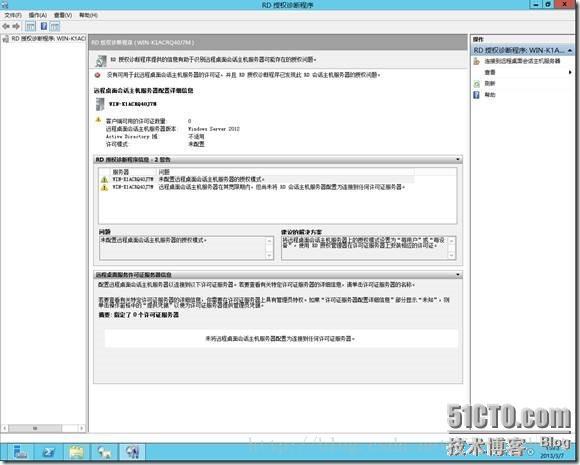 1) 管理工具—遠(yuǎn)程桌面服務(wù)—RD授權(quán)診斷程序,查看當(dāng)前服務(wù)器為沒有授權(quán)