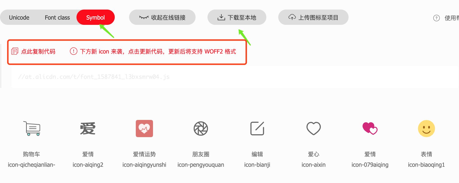 第二種方法,支持多色,以及多個圖片引入效果也會比較好,缺點需要下載到本地文件包,并且一定要放在同一個目錄下才能使用。