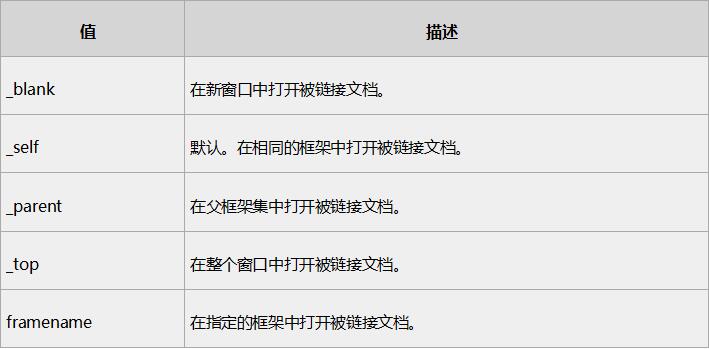 target屬性用于表明在什么地方打開被連接資源,其取值有五種: