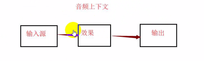 在圖中,音頻上下文提供了音頻處理的一套系統方法。輸入源指音樂文件,通過名稱引入;效果就是對輸入源進行加工,如制作音頻圖、音波圖、3D環繞、低音音效等;輸出就是把效果輸出到耳機、揚聲器等目的地。