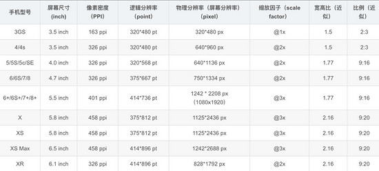 各種類型的 iphone 手機(jī)屏幕設(shè)備的參數(shù)