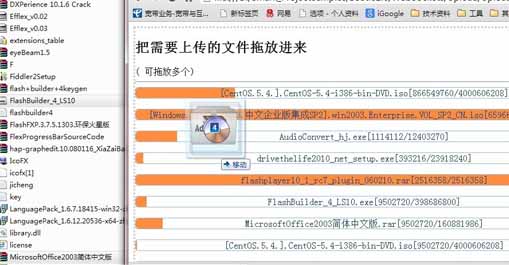 主要功能是用戶可以直接把文件夾的文件直接拖放到網頁中,并進行上傳,在上傳的過程中顯示上傳進度信息.