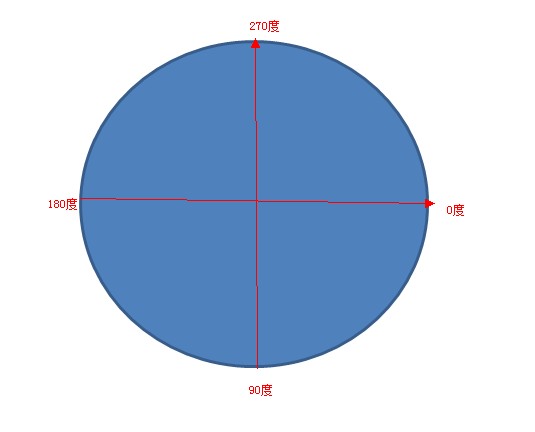 其它都好說,主要這個開始角度和結束角度我們來研究下,因為開始我沒搞懂,但后來我發現他其實很簡單了。。。就是開始的角度和結束的角度嘛,和我們高中學的知識一樣的,只不過單位換算Math.PI/180為一度。。。。