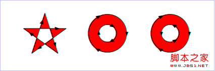 nonzero:這個值采用的算法是:從需要判定的點向任意方向發射線,然后計算圖形與線段交點的處的走向;計算結果從0開始,每有一個交點處的線段是從左到右的,就加1;每有一個交點處的線段是從右到左的,就減1;這樣計算完所有交點后,如果這個計算的結果不等于0,則該點在圖形內,需要填充;如果該值等于0,則在圖形外,不需要填充??聪旅娴氖纠?/span>