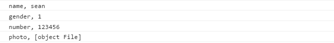 該方法也接收一個(gè)參數(shù),同樣是 key 的名稱(chēng),返回一個(gè)Boolean 值, 用來(lái)判斷FormData 對(duì)象是否含有該 key。以上面的form為例: