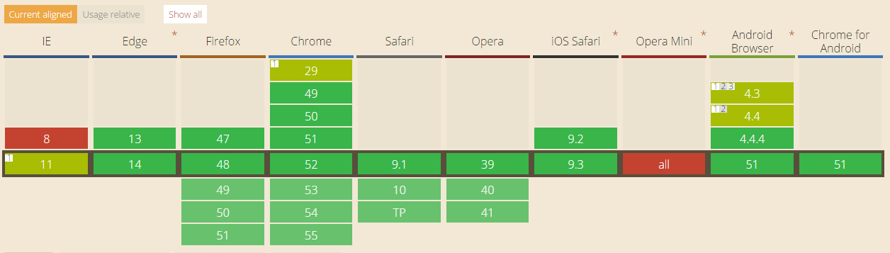 由于 FormData 是 XMLHttpRequest Level 2 新增的接口,現(xiàn)在 低于IE10 的IE瀏覽器不支持 FormData ,至于 上面介紹的 FormData 對(duì)象的方法經(jīng)過(guò)測(cè)試,在 IE 瀏覽器中都不支持,具體的各大瀏覽器的支持情況可以參照下圖: