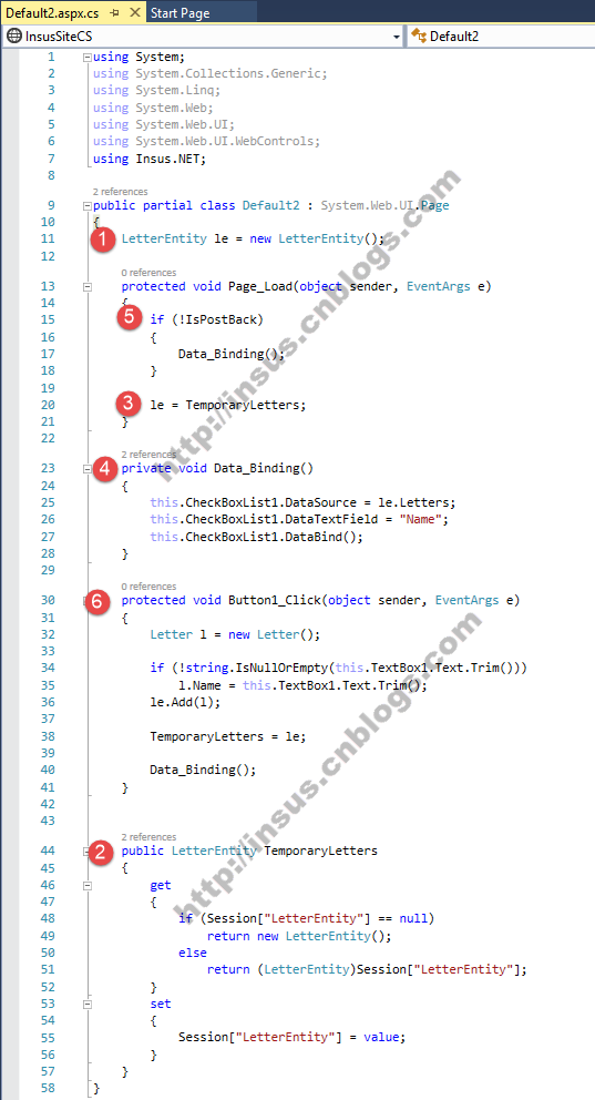 Insus.NET的解決方法很簡單,就是每次在文本框輸入的值都存起來,然后把這些數據綁定至一個CheckBoxList控件上就行了。