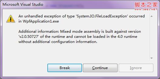 最近部門的開發環境都更新到了WIN7+.NET framework4+VS2010上,在體驗新技術和新環境帶給我們提高效率的方式方法的同時也帶來了一些兼容性的問題;這幾天項目閑暇時在研究SQLite,在做實驗的時候碰到個問題,代碼編譯通過執行時反復異常中斷,查到后面原來是SQLite.dll是在framework2.0環境下編譯的而現在的運行環境是framework4.0,所以就出現了運行異常,如圖: