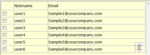 下面是Repeater控件Html,有兩個地方需要注意的,就是CheckBox與Label,這個Label是隨你需要獲取的內容而變化喔。如你想獲取Nickname,那你需要把綁定的的內容放在Label上。