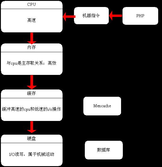 對數據庫的操作屬于I/O操作,屬于機械運動,也就是說一個網站的瓶頸再去對硬盤的讀寫造成的,解決辦法就是減少i/o操作次數,使用緩沖技術,就是在數據的操作放在mencache里面,達到一定數量級的時候在一次性寫入數據庫,mencache屬于key--value關系
