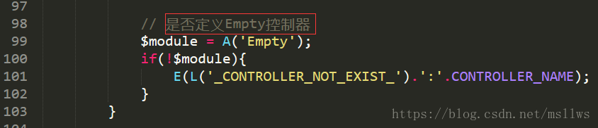 查看根目錄下 ThinkPHP/Library/Think/App.class.php 101行前后代碼: