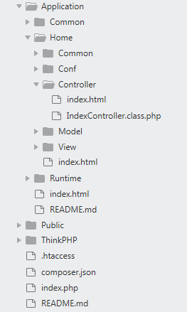 首先下載了一個ThinkPHP3.2.3,目錄結構如下:(只有Home模塊、Index控制器、index操作方法)