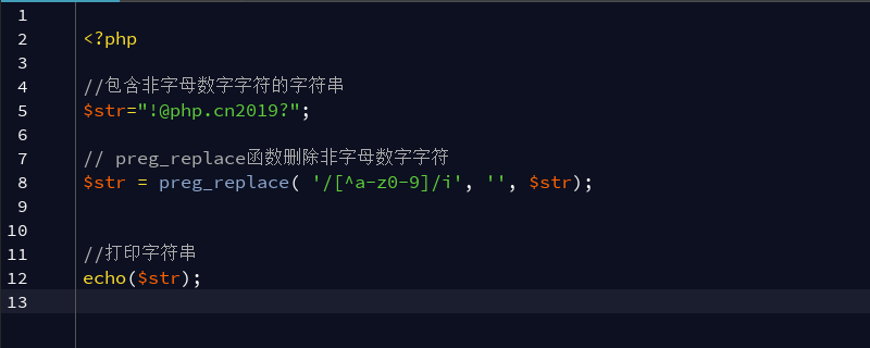 可以使用preg_replace()函數刪除非字母數字字符。此函數執行正則表達式搜索和替換。函數preg_replace()搜索由pattern指定的字符串,如果找到則用替換替換模式。