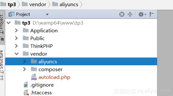 同時,您的項目下的 vendor 文件夾內,也將新建 aliyuncs 文件夾,里面的文件就是OSS庫文件及示例文件。