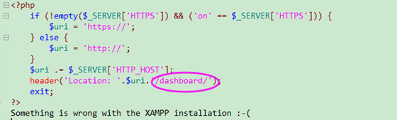 打開(kāi)xmapp下htdocs文件夾下 index.php文件 配置文件中默認(rèn)跳轉(zhuǎn)到本文件夾