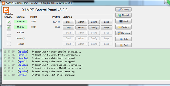 此時(shí)進(jìn)入xmapp面板顯示成功運(yùn)行